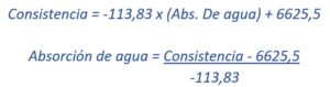 Esta ecuación permite saber, para la muestra de harina ensayada, (no es extrapolable a otras muestras), la cantidad de agua que se debe añadir para alcanzar la consistencia deseada.