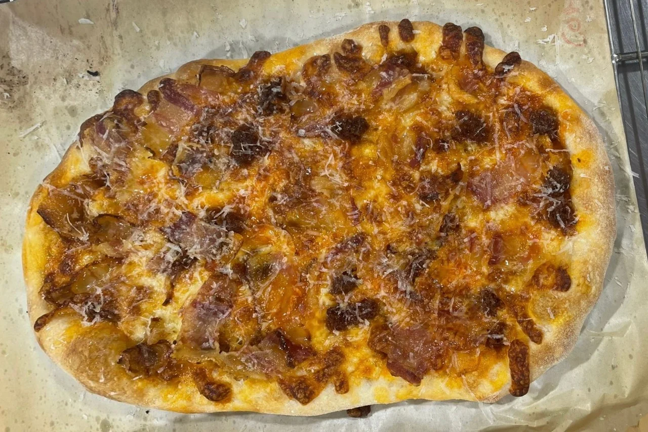 Durante la sesión trabajamos todo el proceso desde el principio: la elaboración de la masa, las proporciones adecuadas de los ingredientes y el amasado, parte clave para conseguir una textura perfecta. Los alumnos aprendieron cómo trabajar la masa correctamente, cómo estirarla según el tipo de pizza que quisieran hacer y qué pequeños trucos marcan la diferencia para que el resultado final sea lo mejor posible incluso en hornos domésticos.